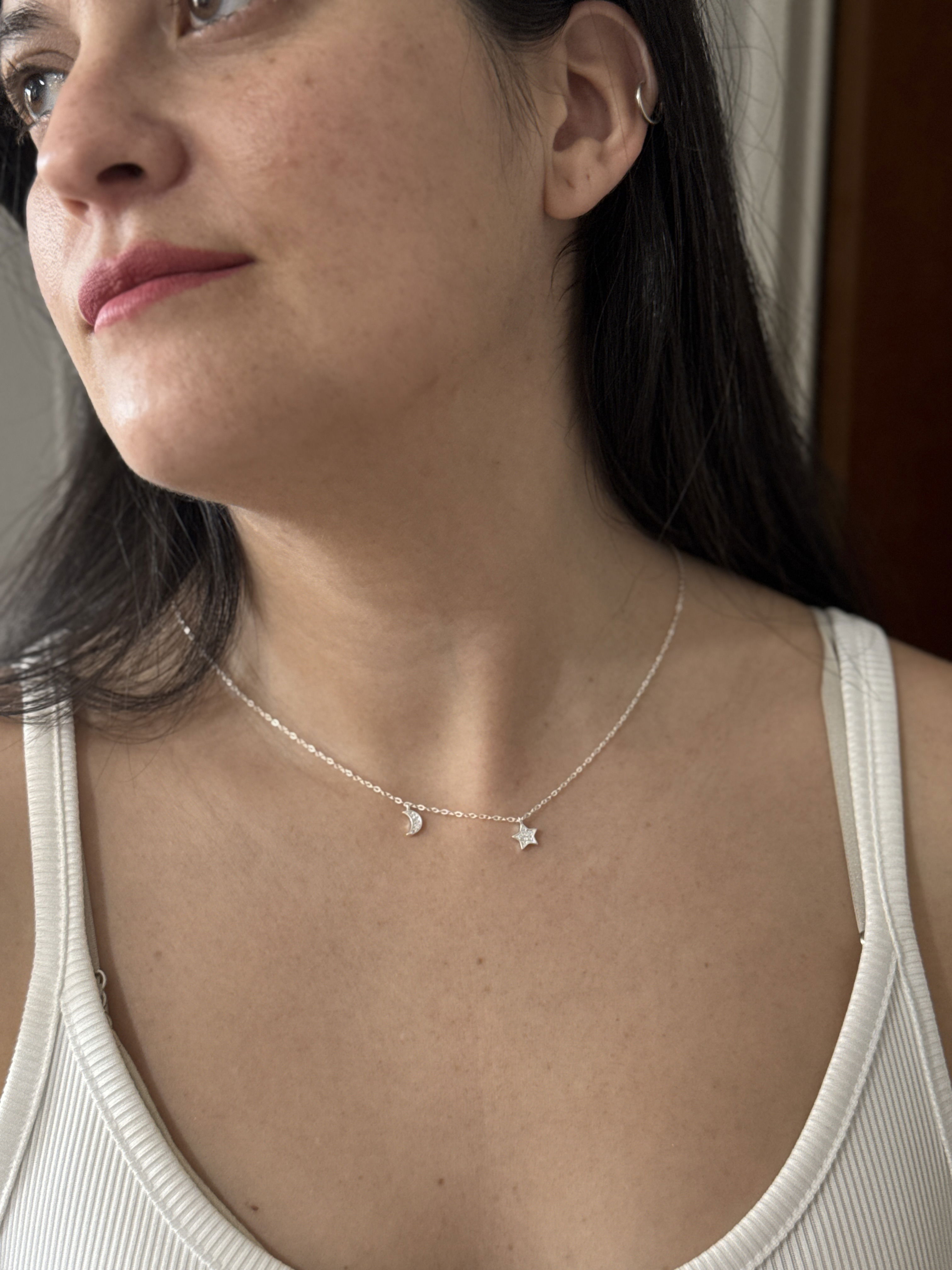Choker plata 925 - luna y estrella