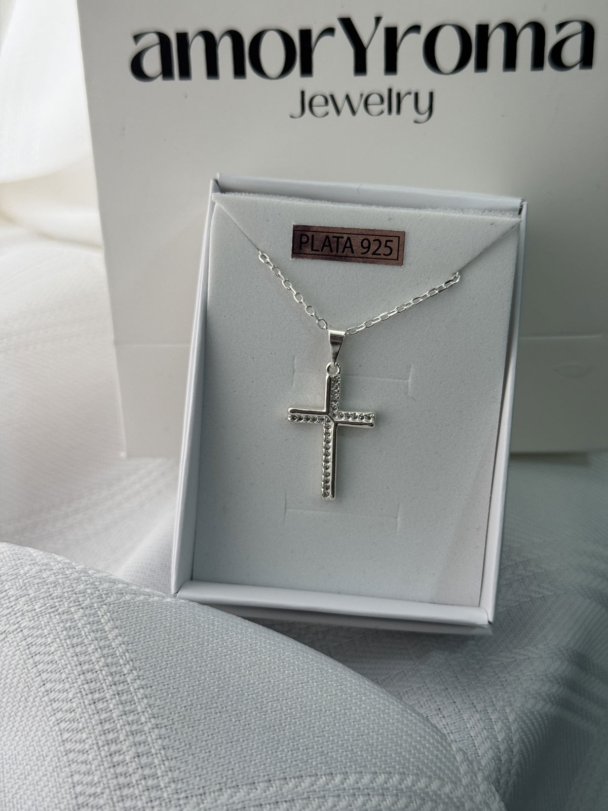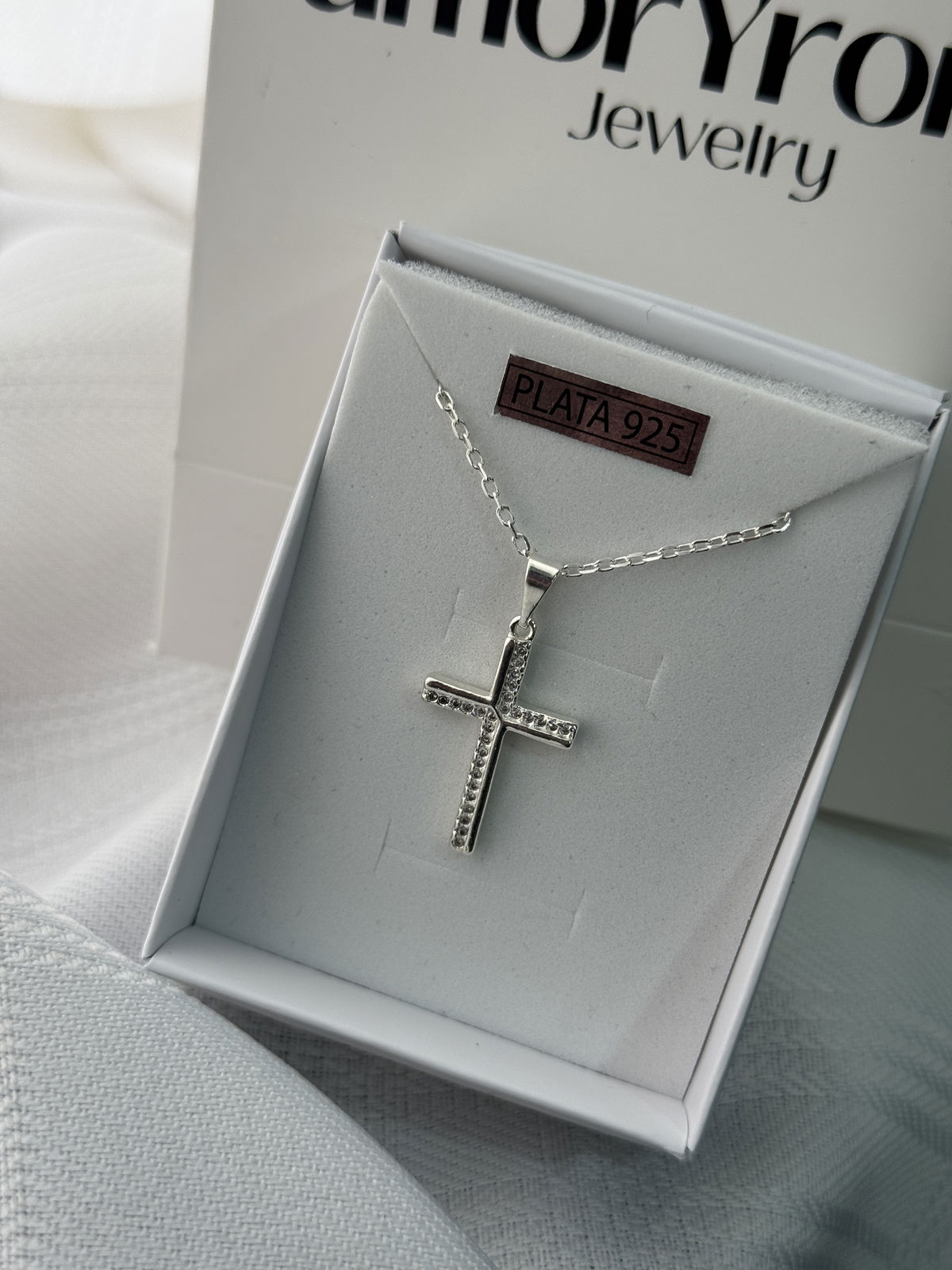 COLLAR CRUZ CON CRISTALES PLATA 925