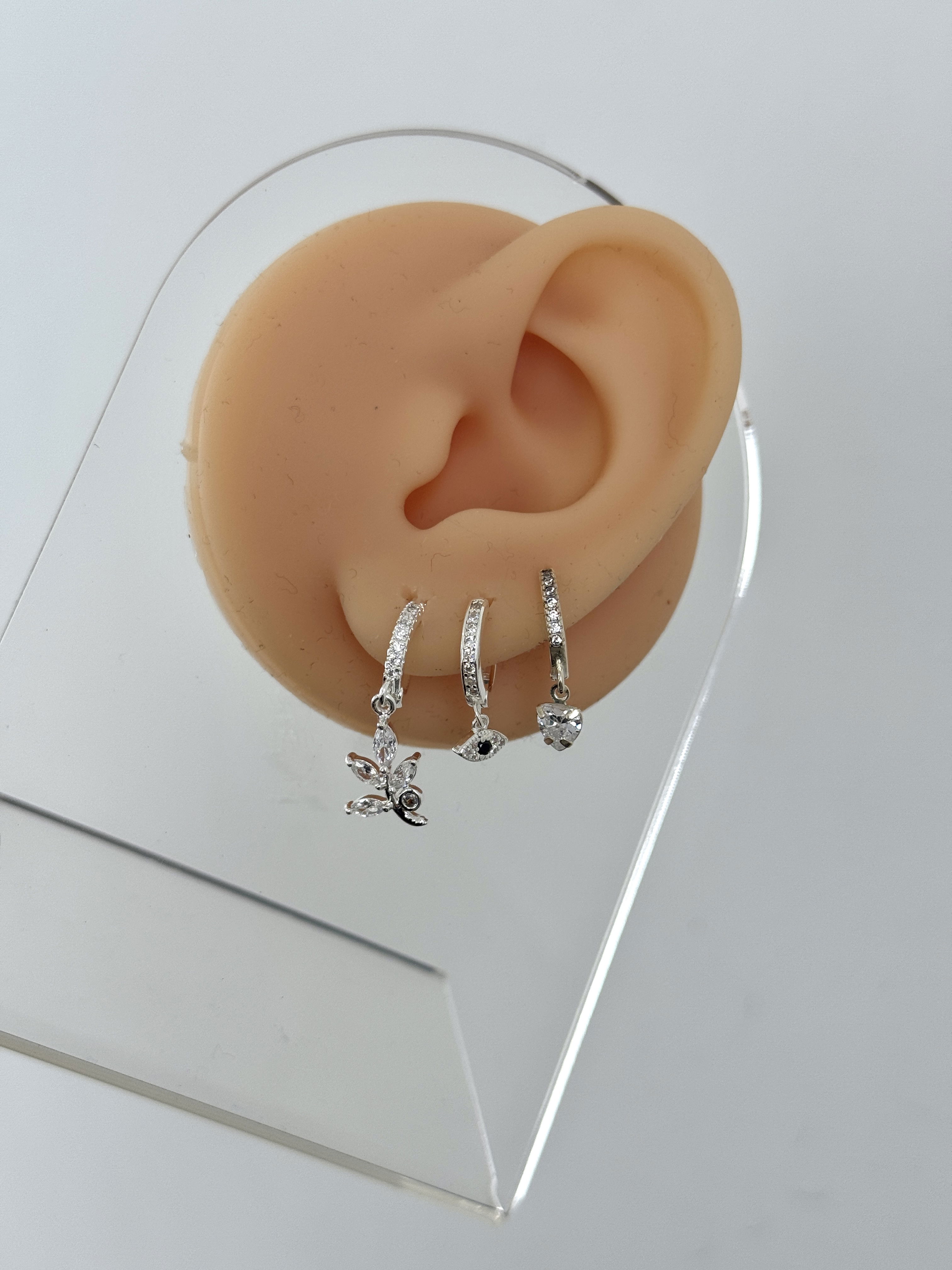 1 aro flor, 1 aro ojito y 1 aro corazón.